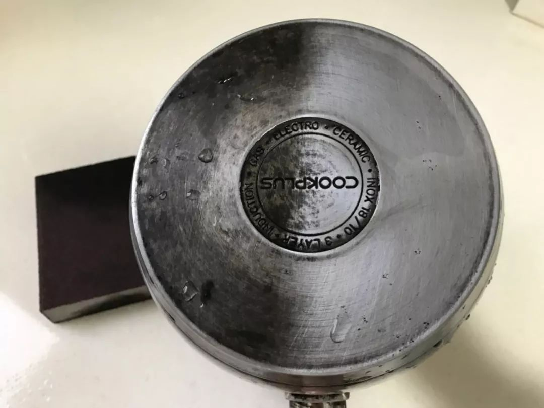 3.將鍋和金剛砂海綿用清水沖洗干凈,就大功告成了,整個去除 鐵銹的過程十分的簡單。